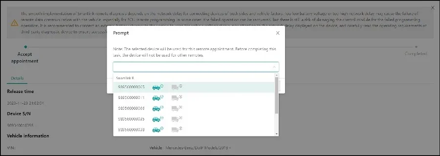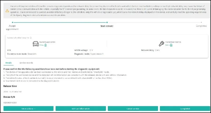 3. Once the connection is ready, you can operate the diagnostic device to start remote diagnosis.the online status of the devices, vehicle voltage, network delay can be shown on the Smartlink platform.