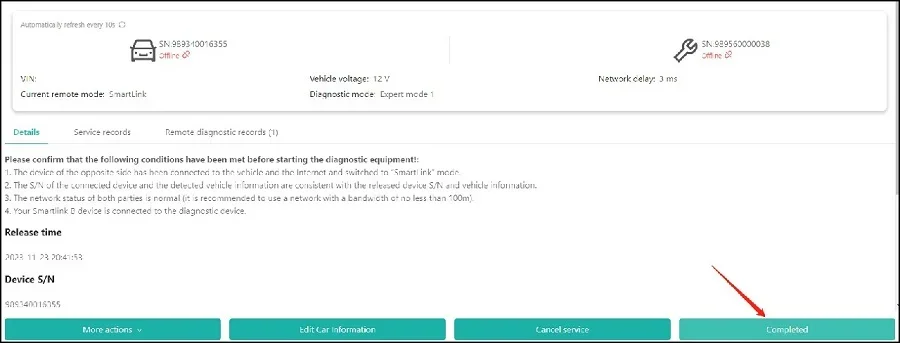 5)If you fix the vehicle issue, please click “Completed”. Or you may click “Give up” if you can’t solve it.