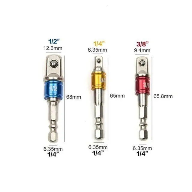 3pcs/set Chrome Vanadium Steel Socket Adapter Hex Shank 1/4" 3/8" 1/2" Extension Drill Bits Driver Electrical Drilling Head