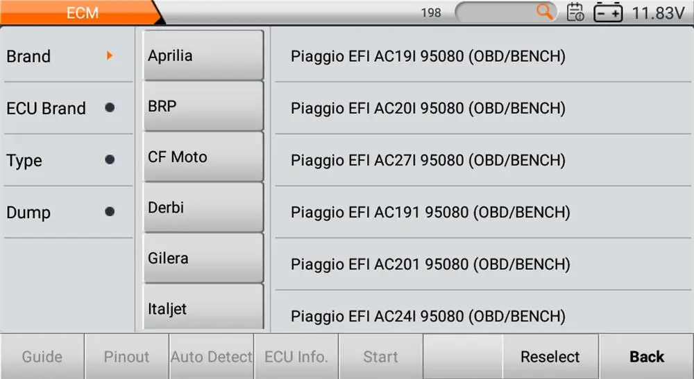 8. Support for Piaggio series engine ECU clone(such as MIU G4 (M4G1))