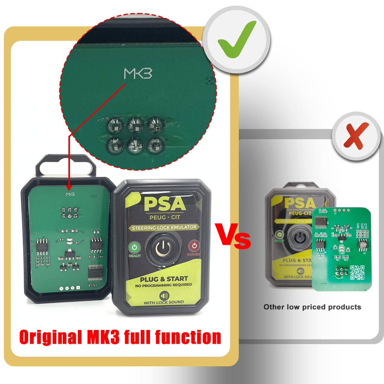 Steering lock problem is one of the most frequent Problems in many cars including the Peugeot Citroen Starting System. and when the steering lock is faulty, the car will start even if the customer has a 100% working key for it until you order a new steering lock for it from Peugeot Citroen agencies. BUT instead of spending hundreds of dollar for order a new OEM steering lock, we offer you this economic solution; the PSA Peugeot Citroen Emulator which needs NO PROGRAMMING, just plug and start!