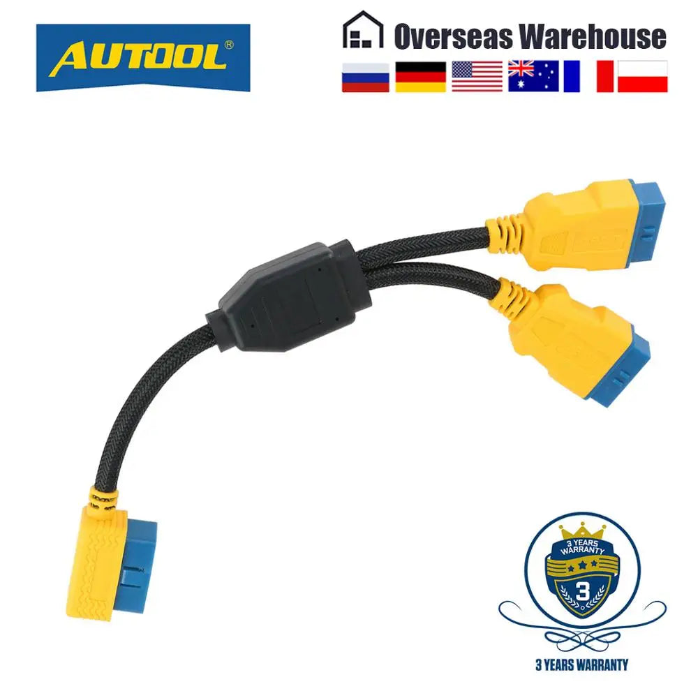 1 x AUTOOL 35cm 1 to 2 Splitter Wire 16pin OBDII Male to Female Extension Cord