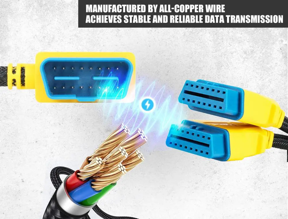 For AUTOOL OBD enhanced cable series, we apply full-automatic technology, use high quality pure copper core and plastic with TPE materials also covered with Protecting Nylon Braided Sleeves. It takes 8 inspection steps from injection to molding to ensure the cable can be plugged over 10,000 times.