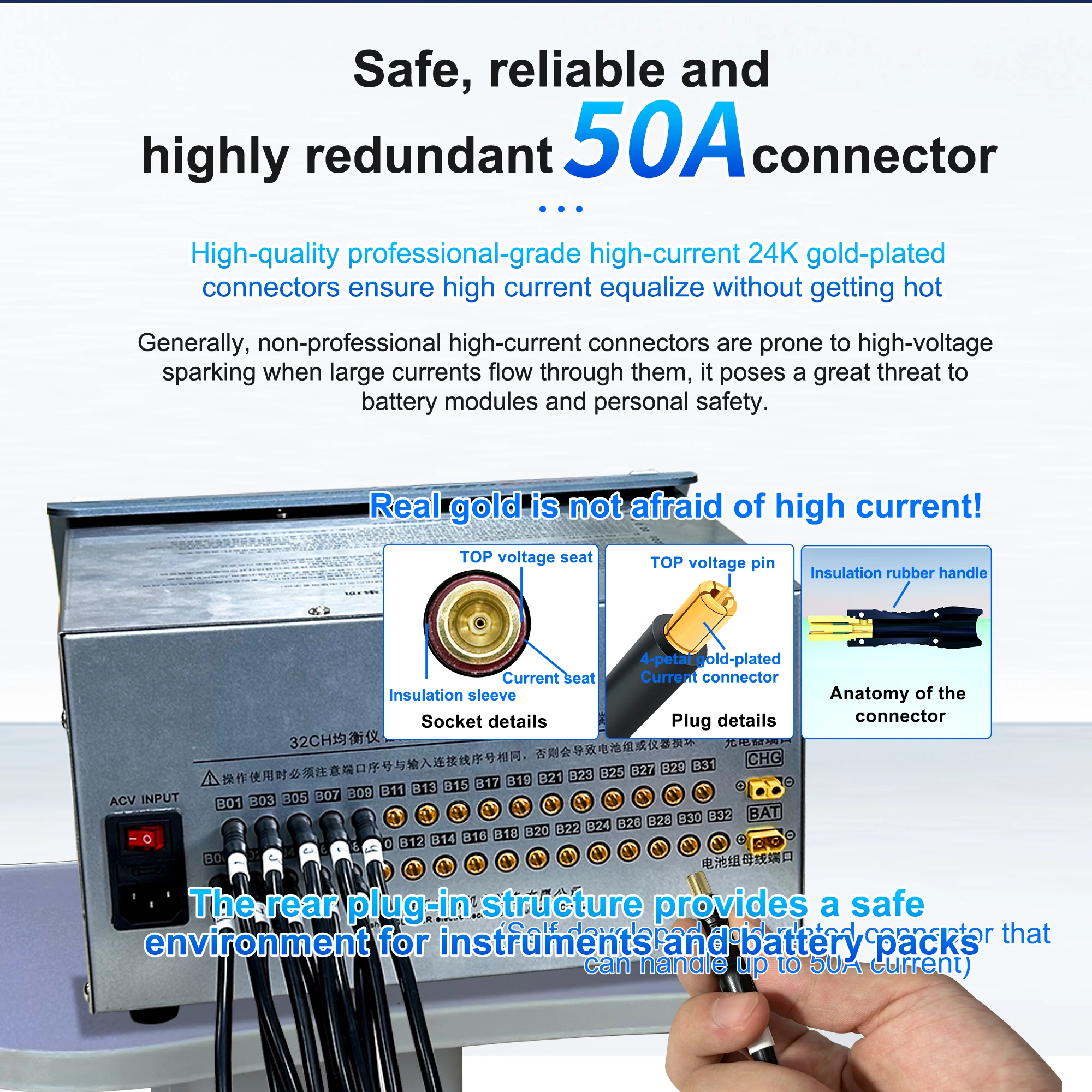 1. High current 24K gold-plated connectors