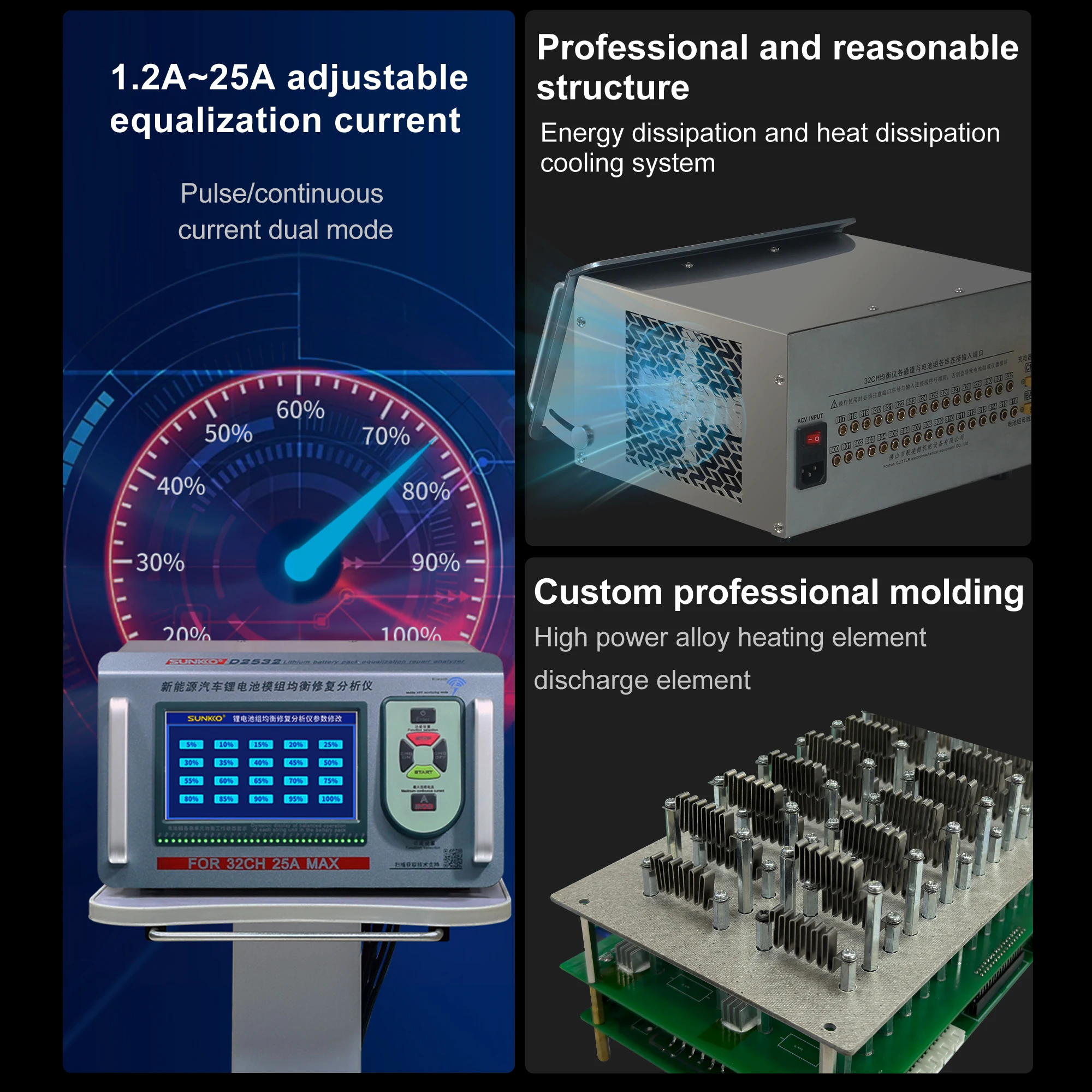 SUNKKO D2524 D2532 25A New Energy Vehicle Lithium Battery Module Equalizer For New Energy Vehicle And Battery Analyzer